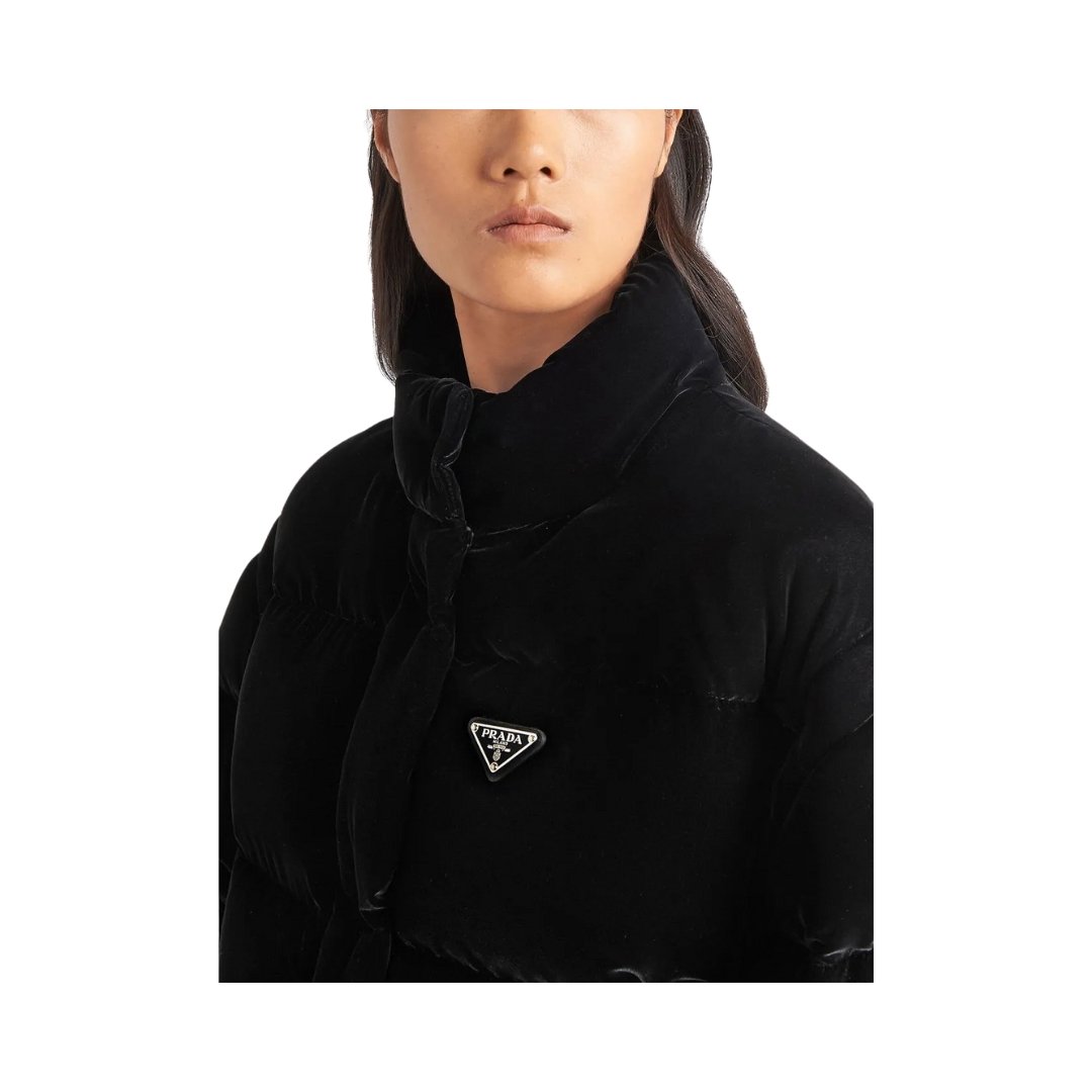 Wandelbare Samt-Daunenjacke Black