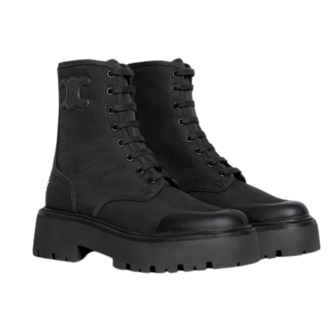 Bulky Schnürstiefel aus Nylon und glänzendem Bullenleder Black