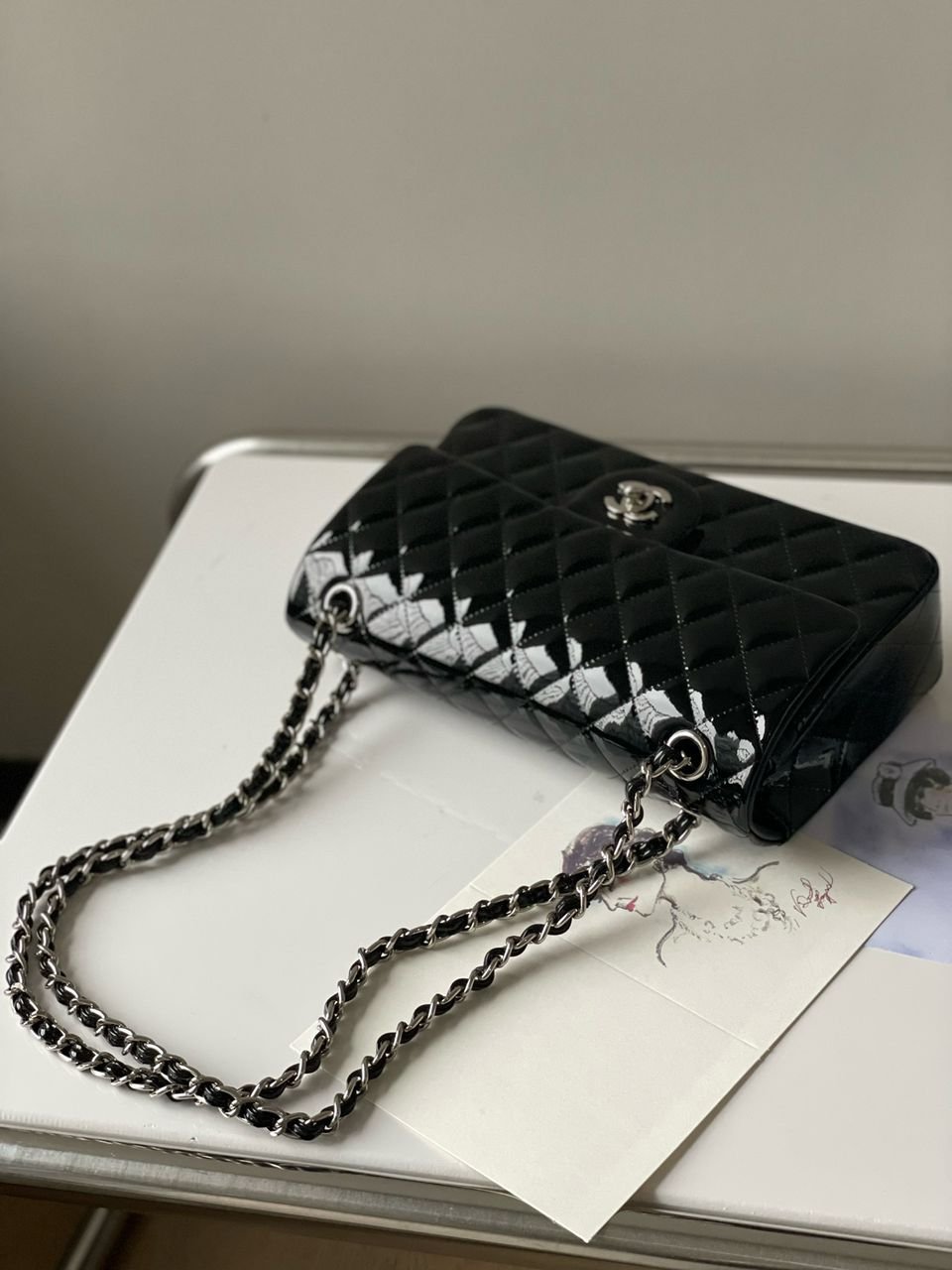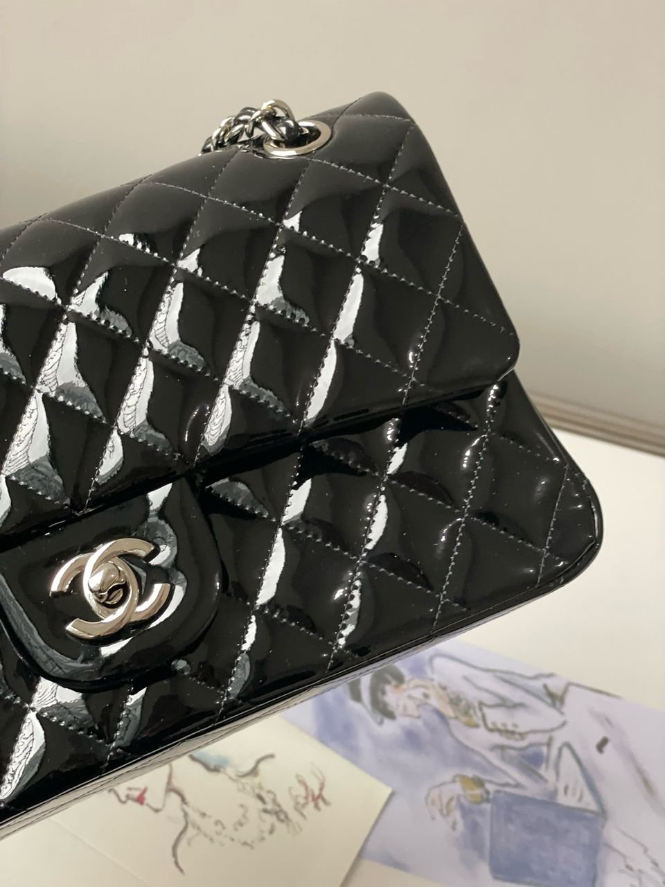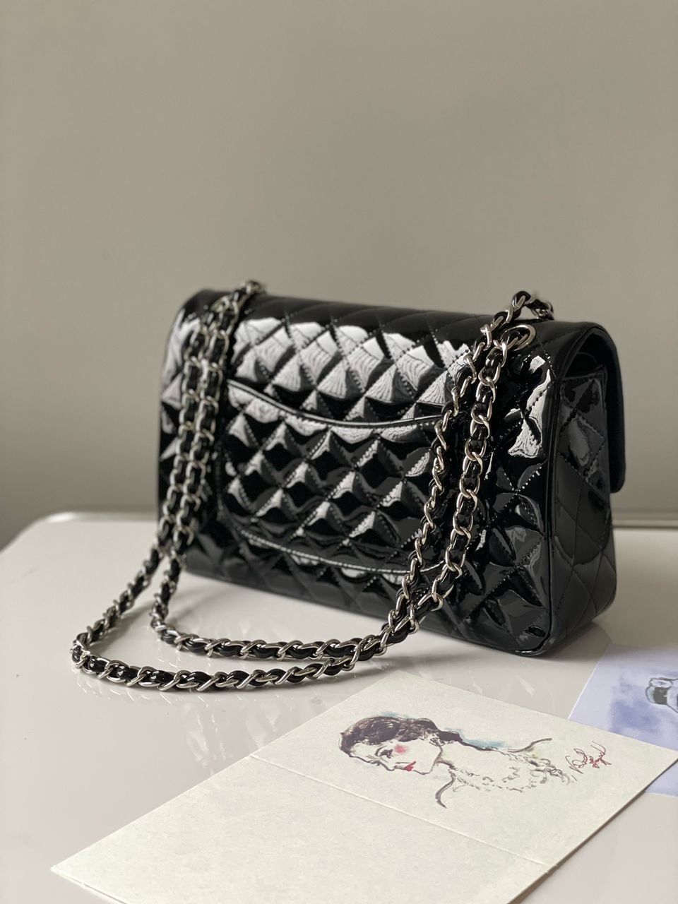 Classic Double Flap Jumbo Lackleder Black 30 cm