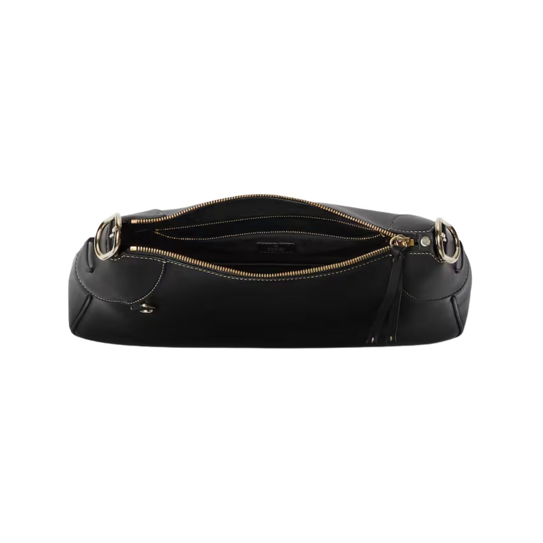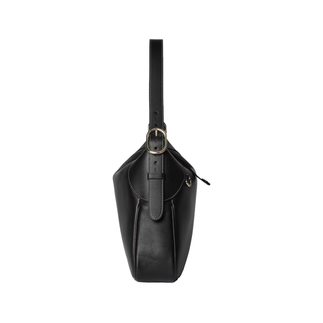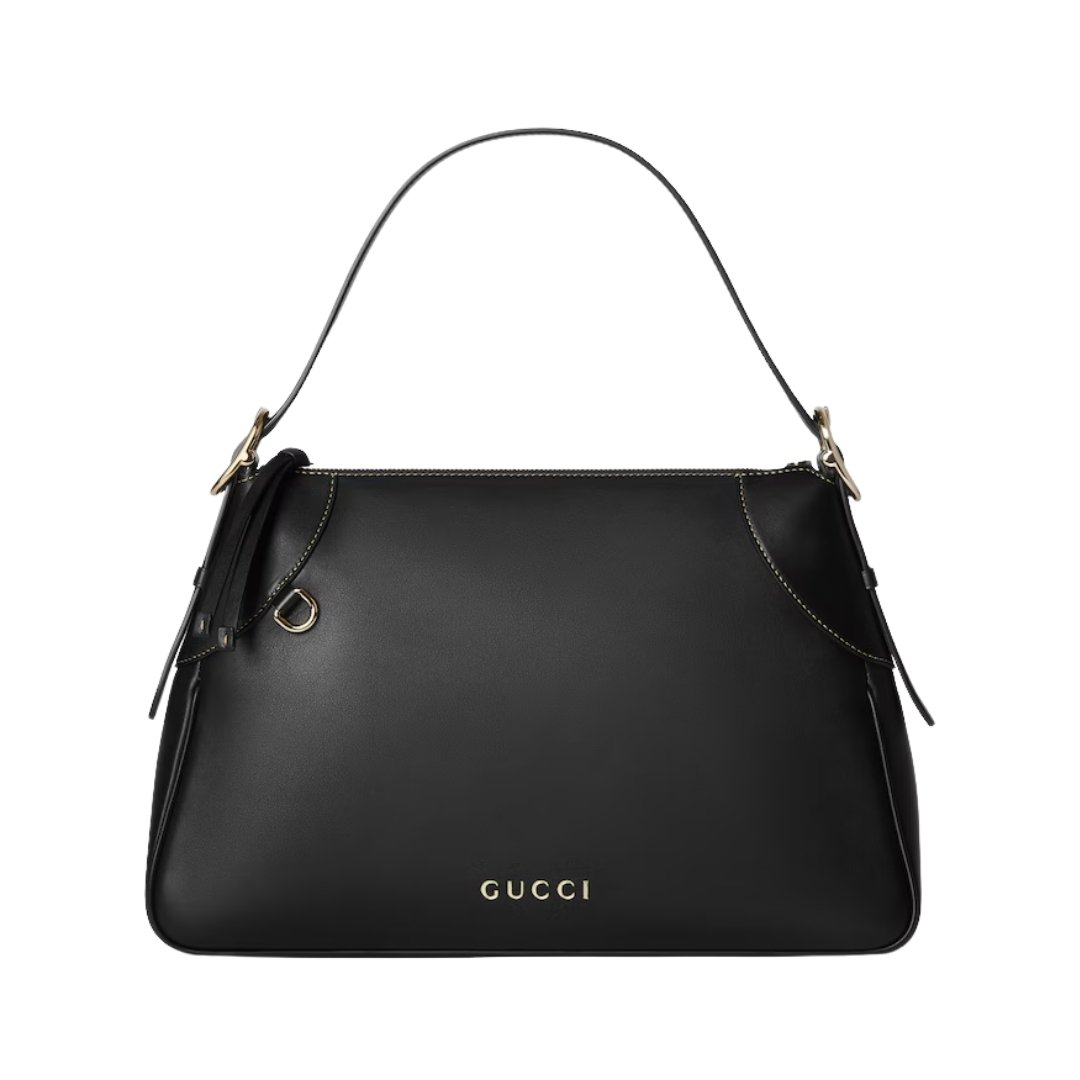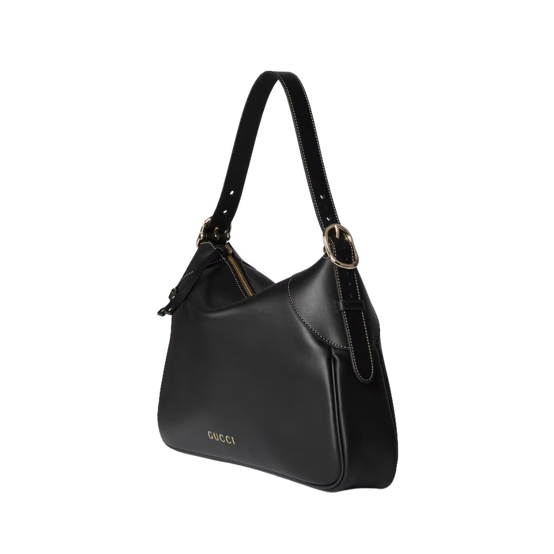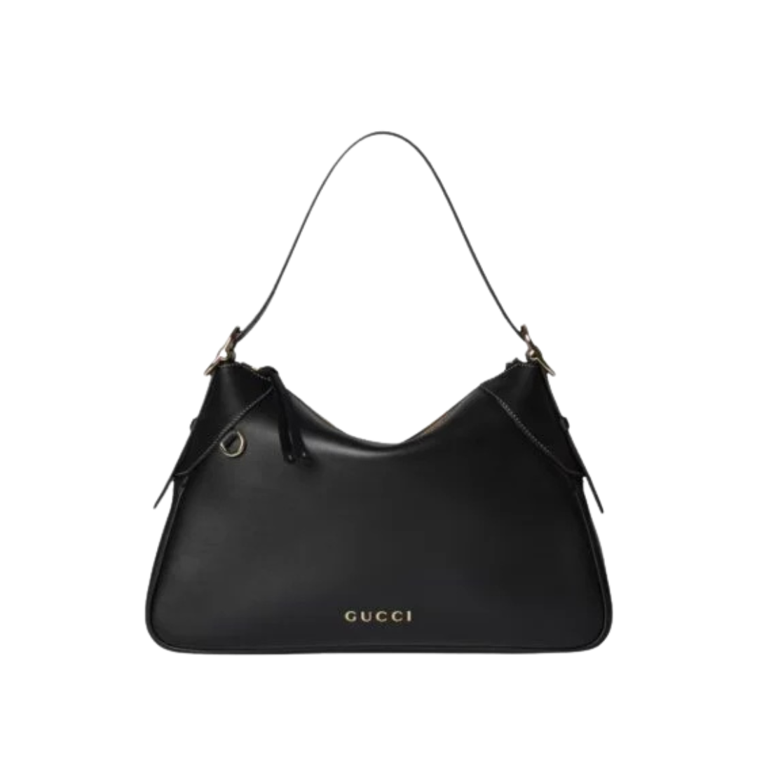 GG Emblem Schultertasche Blackes Glattleder 37cm