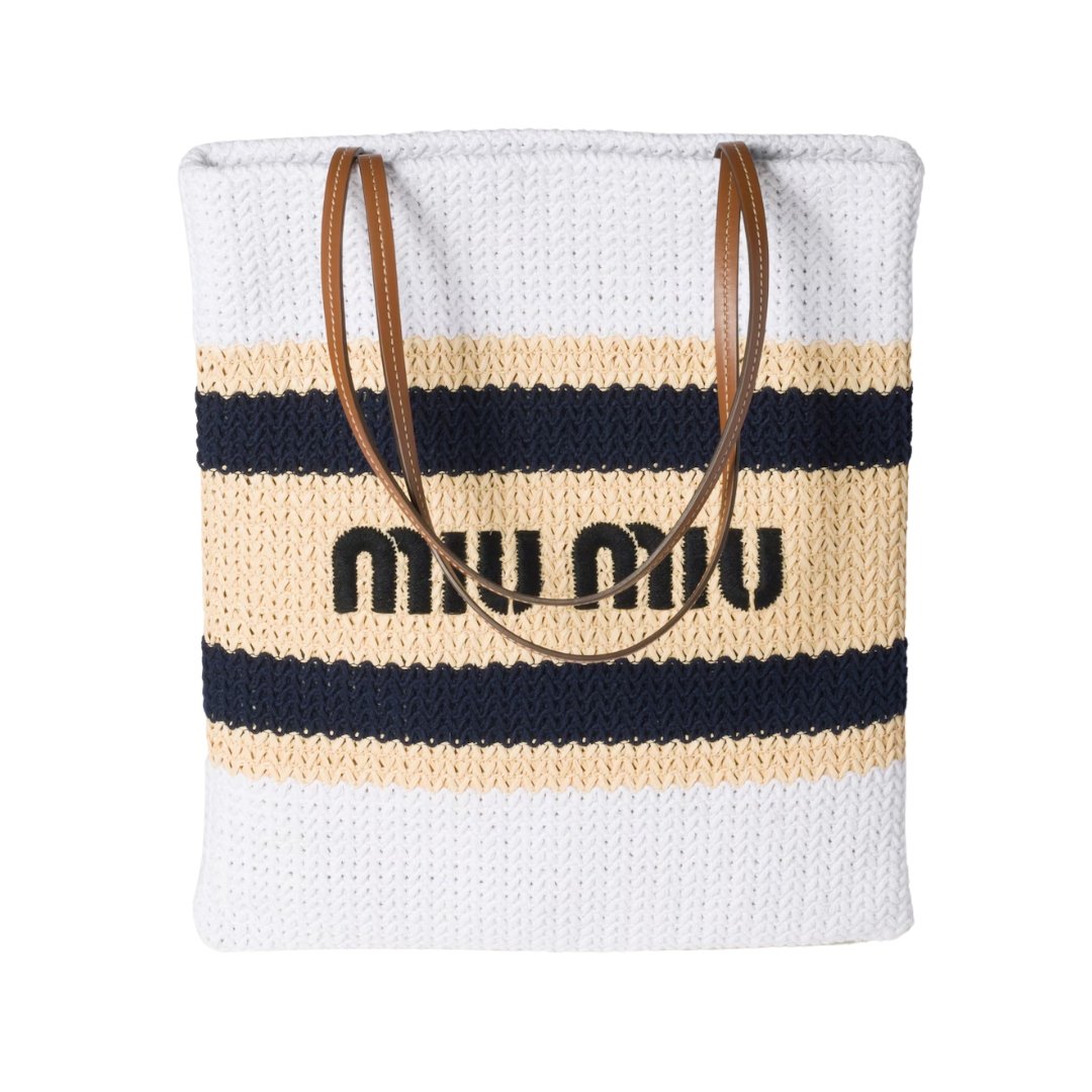Raffia Tote LightBrown/White 41 cm