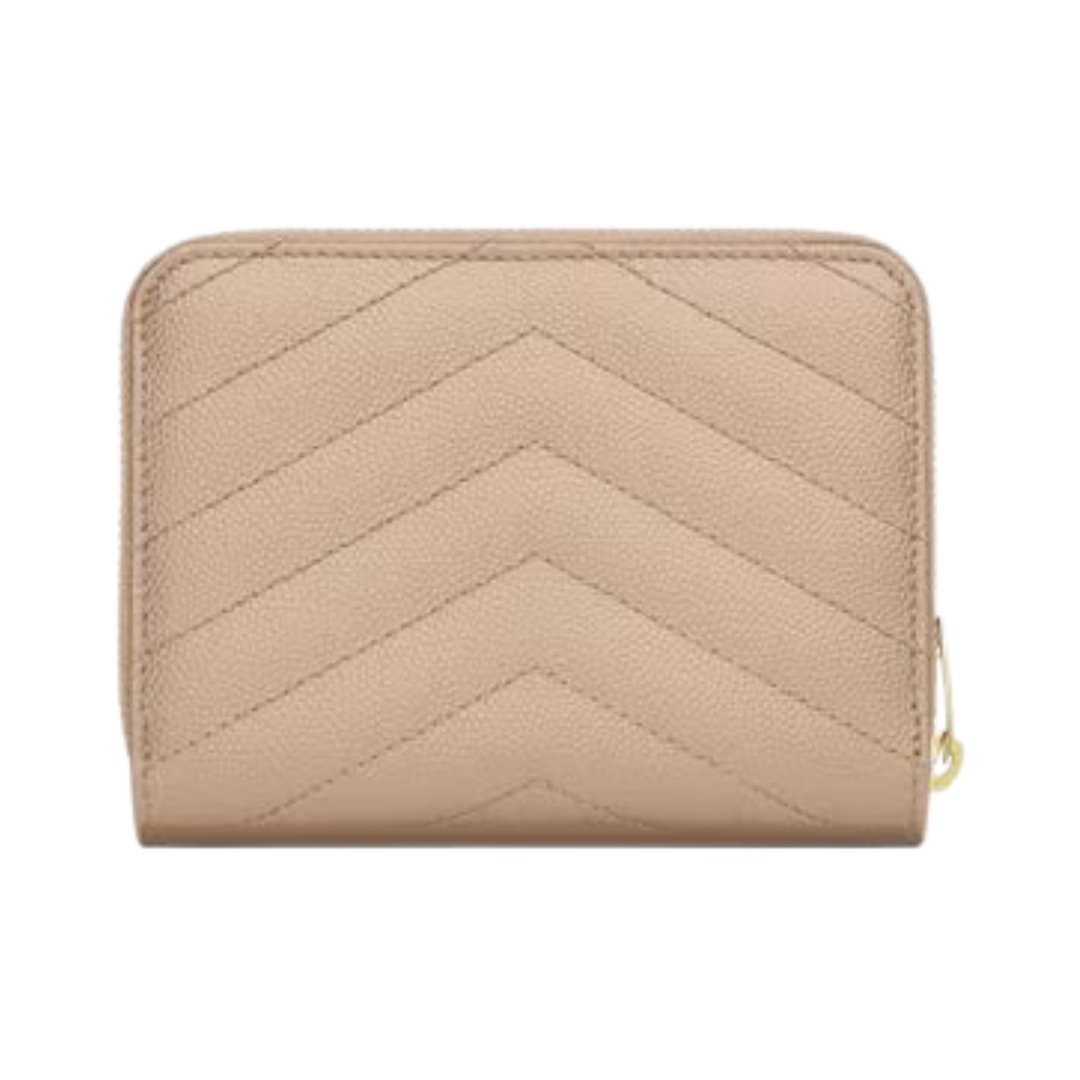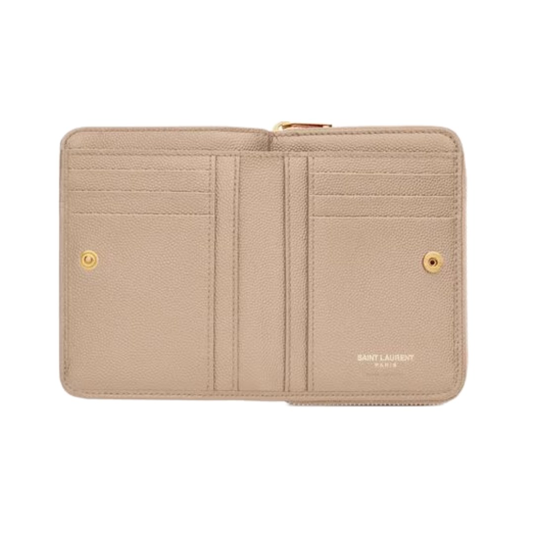 Cassandre matelassierte kompakte Reißverschluss-Brieftasche aus Grain de Poudre Leder 12cm