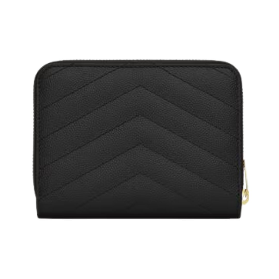 Cassandre matelassierte kompakte Zip-Around-Brieftasche aus Grain de Poudre Leder 12cm