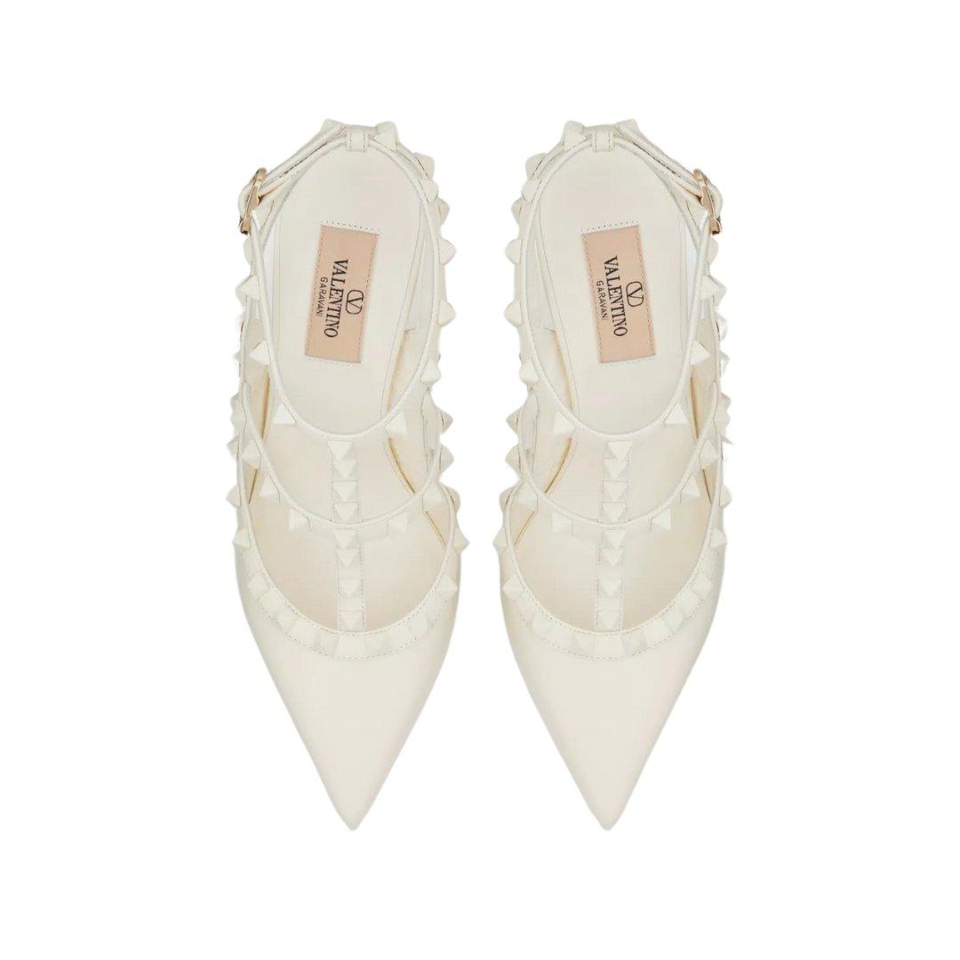 Rockstud Ankle Strap Pumps Ivory 100cm