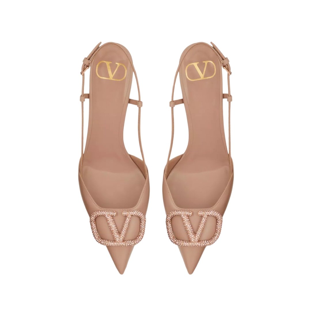 Slingback Pumpe aus Leder in Rose Cannelle 80cm
