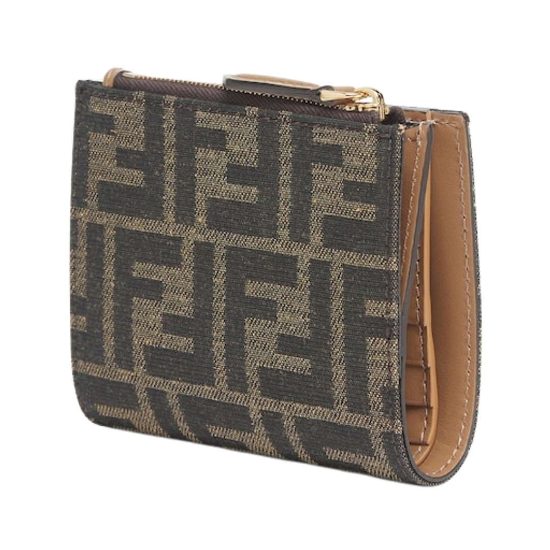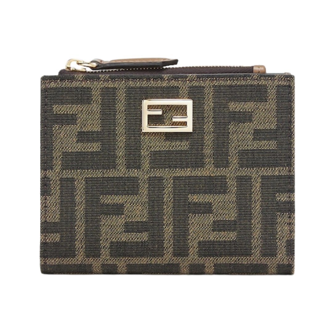 Brieftasche aus Jacquard mit FF-Muster in Browner Farbe 9.5cm
